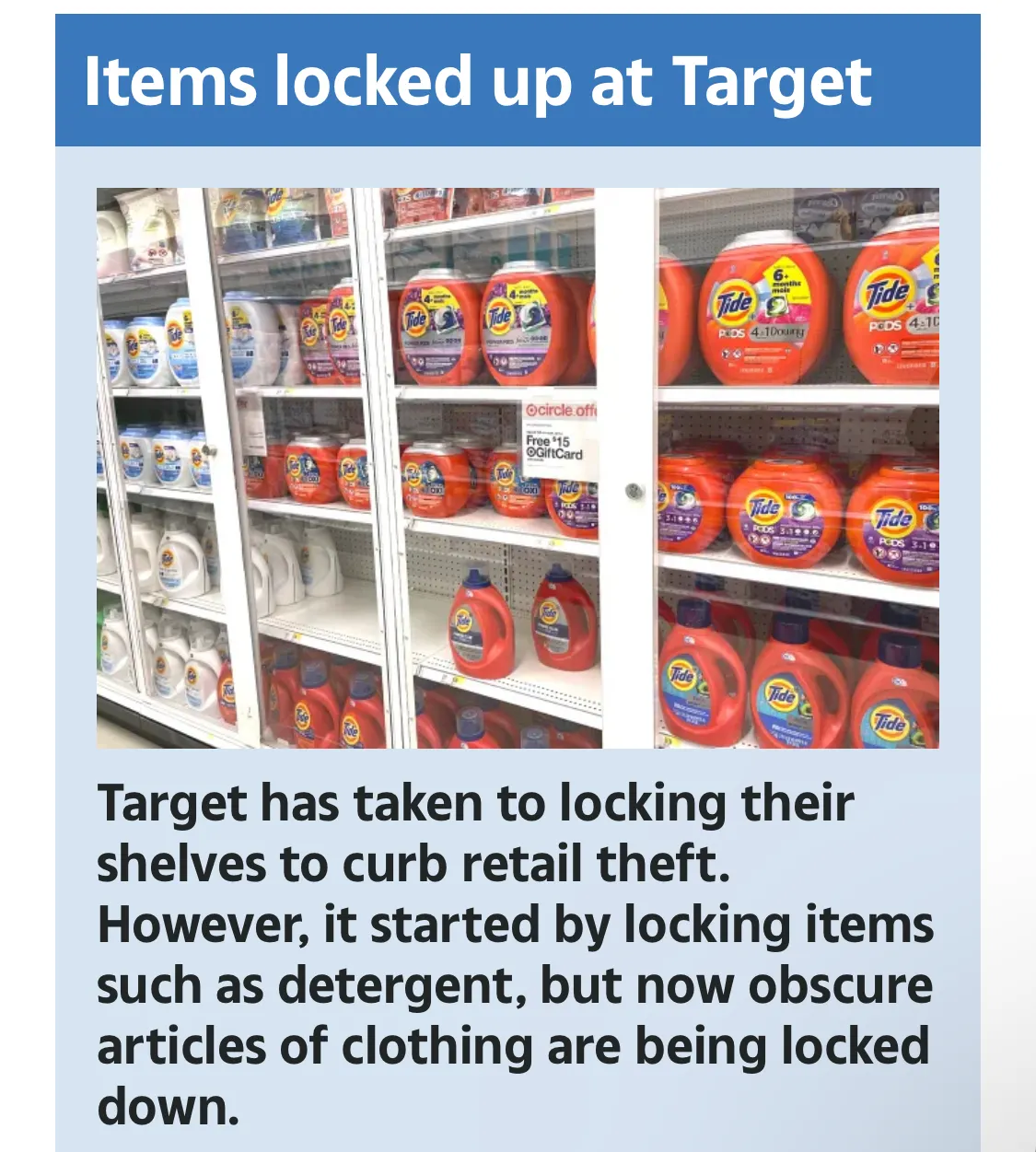 미국의 재고로스(shrinkage:Organized retail crime)대처 두가지: 자율계산대 정책변화, 생필품조차 폐쇄형(진열장진열)으로 변경중. 양말까지!