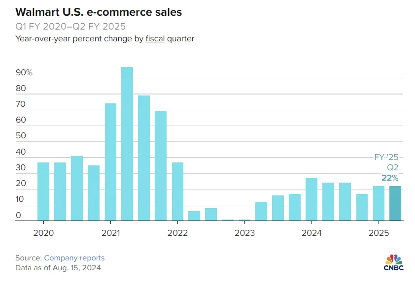 CNBC의 짐 크레이머는 월마트의 분기 실적을 검토하면서, 대형 유통업체의 강력한 실적은 성공적인 사업 전략 덕분이며 반드시 소비자 환경이 좋아졌다는 것을 나타내는 것은 아니라고 말했습니다. 이 말을 리뷰해보면 성공적인 비즈니스의 겨로가를 보면, 무슨 이커머스의 진격, 쿠팡/네이버쇼핑의 영향 등으로 인해 부진했다고 말하지만 실질적으로 ‘성곡적인 사업전략’이 그 핵심이란 말이 인상적이다. 제대로 된 사업전략이 중요하다. 월마트의 성공은 가치 있는 가격과 온라인 배송과 같은 편리한 서비스에 달려 있다고 합니다. 그는 회사가 가격을 적정 수준으로 유지하면 ”트래픽은 스스로 해결된다”고 말했습니다.월마트 2분기실적의 우수함은 전자상거래관련이 이 성공적: ‘전체 전자상거래 매출은 21% 증가했습니다. Walmart Marketplace 매출은 32% 증가했습니다. Sam's Club과 Walmart+의 멤버십 수입은 21% 증가했습니다. 매장에서 직접 배달하는 매출은(점포에서 온라인 주문상품 픽업해서 배달 또는 PICKUP) 1분기 내내 50% 증가했습니다. 이 모든 활동은 전자상거래 관련 지수의 상승을 의미하므로 온오프전략(통합상거래: UNIFIED COMMERCE)이 잘 되고 있다는 증거이다. 어느 특정영역을 강조하기위해 오프라인을 약하게 만드는 일이 없는 것이다.