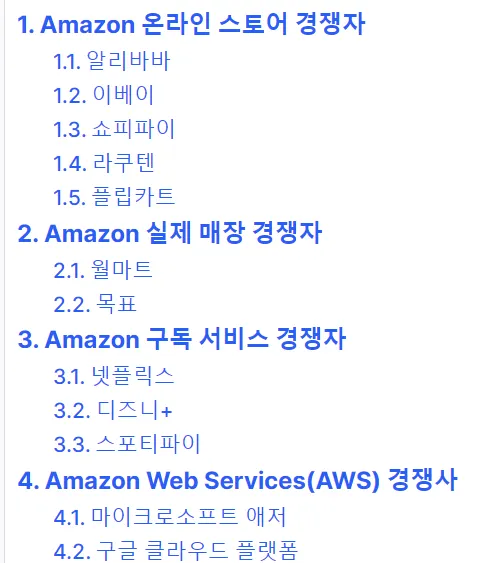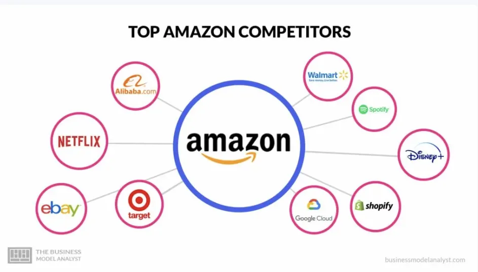 아마존의 경쟁사는? 월마트는 아마존이외, 유통소매업을 주요 경쟁사로 삼고 있지만, 아마존의 경쟁상대는 월마트보다 더 복잡하고 경계가 더 넓다 예를들어 넷플릭스, 구글클라우드, 스포티파이, SHOPIFY 등