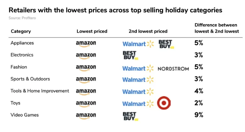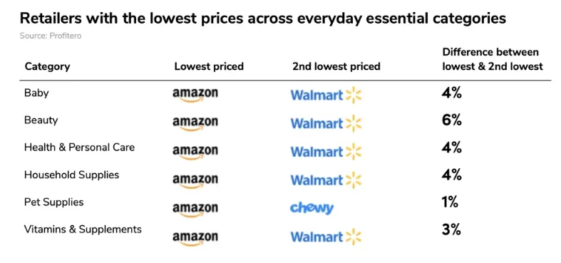 미국 유통업체들의 가격전쟁(price war)결과: 아마존이 최고의 가격경쟁력 가짐