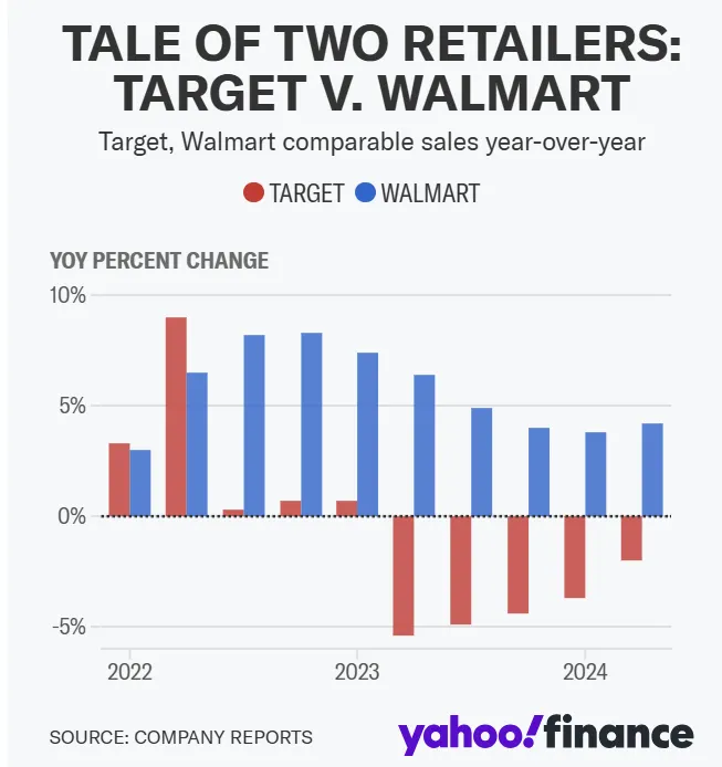 Walmart와 Target의 전년대비 기존점포 신장율(comp.)비교