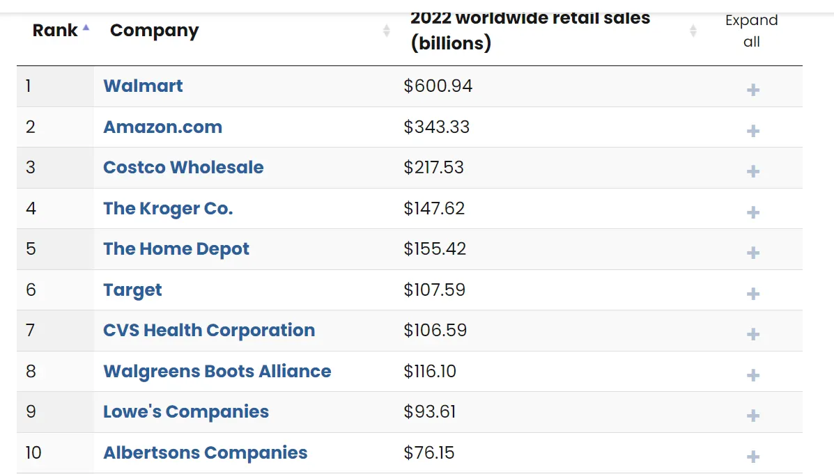 2022년도 미국 5대 오프라인 소매업체(NRF: NATIONAL RETAILN FEDERATION)