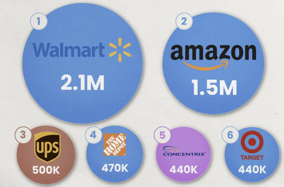 1위 월마트, 2위 COSTCO, 3 홈데포 4 크로거 컴페니 5. 월그린 부츠 얼라이언