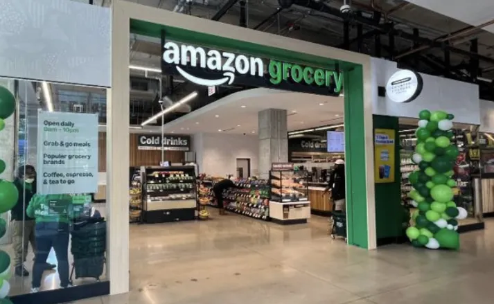 아마존은 whole foods market daily shop에 이어 amazon grocery를 실험하고 있는중이다. 아마존 그로서리는 홀푸드 마켓 고정고객중 일반 브랜드(홀푸드는 pl이 많으므로 홀푸드에서 취급하지 제품 중)의 품목을 늘리고( Amazon Grocery에서는 코카콜라, 프리토스, 폴저스 커피 등 일반 식료품점에서 찾아볼 수 있는 유명 브랜드 제품을 판매) 도입하였다. amazon.com으로 아마존닷컴, 아마존 후레시(52개), 아마존 고, 홀푸드마켓(518개)을 이용할 수가 있다. 아마존 그로서리는 아마존 데일리 숍보다 매장면적이 작으며, 이 컨셉은 팝업이 아니다. 고객중심적 매장을 구성하였다. 즉 아마존이 추진하는 오프라인 매장은 그 자체가 의미잇는 것이 아닌 아마존 온라인상에서 고객이 더 쉽게 구매할 수 방법을 모색하는 차원에서 이루어지고 있다. 다양한 즉석 식사와 간식과 함께 일상 필수품과 식료품을 구매할 수 있습니다. 구내 커피 바는 인근 주민과 도시 근로자를 위한 또 다른 편의 시설입니다. Amazon의 기술은 Amazon Grocery 매장에도 전시되어 있습니다. 고객은 손바닥으로 결제하고, 마찰 없는 체크아웃을 즐기고, 현관문 옆에 있는 키오스크를 통해 Amazon.com 패키지를 반품할 수 있습니다. 위층에는 Whole Foods Market이 있으며, 인기 있는 핫푸드 바와 다양한 신선한 제품과 가정용품, 셀프케어 제품이 있습니다. 이 매장은 2022년에 문을 열었습니다 .